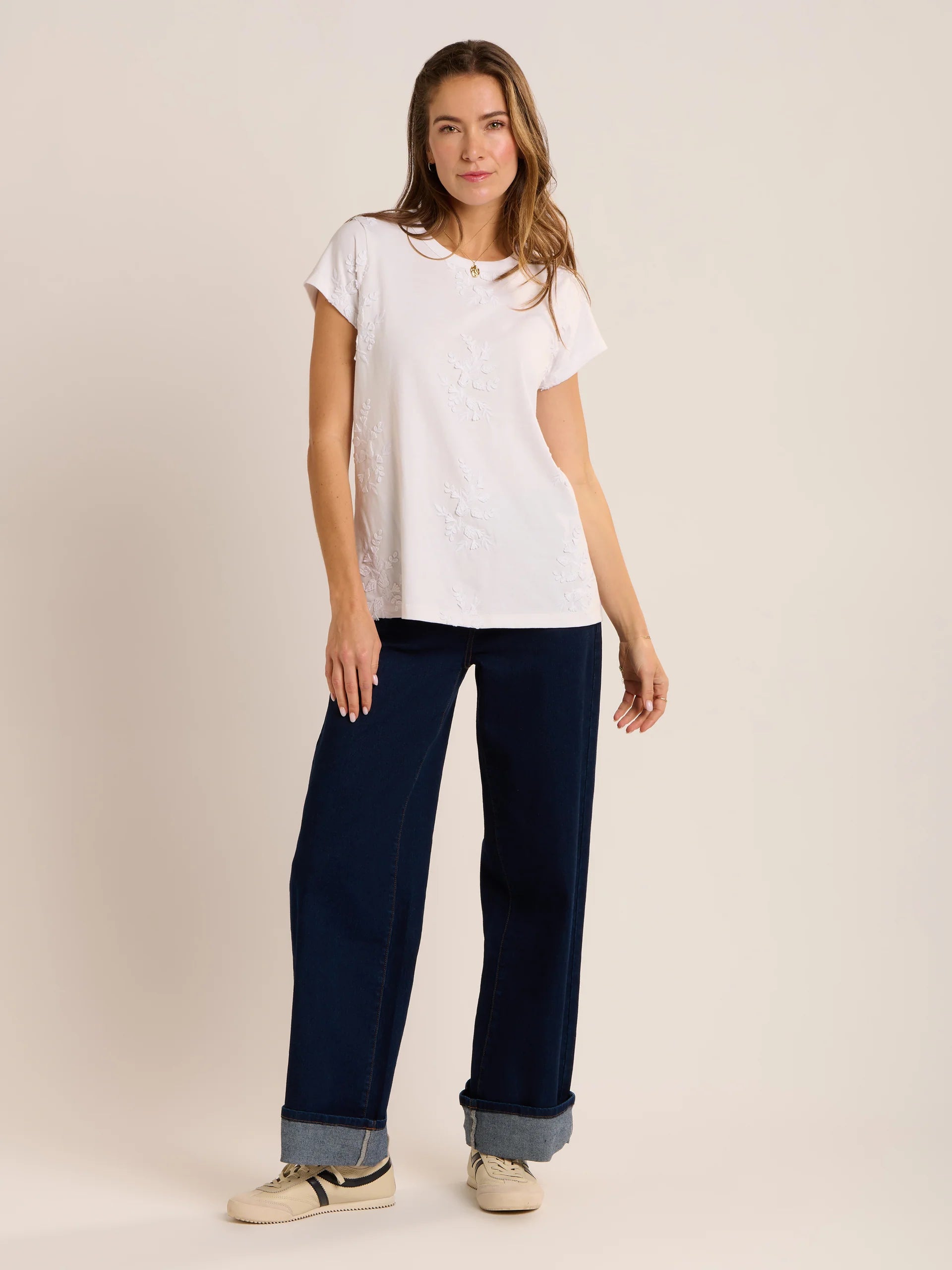 Add a touch of elegance to your everyday with our Agathe T-Shirt, bringing the delicate details of a blouse to a T-Shirt. Made from soft cotton featuring a beautiful floral 3D embroidery to the front and sleeves. Regular fit body with a short sleeve and crew neckline, the perfect T-Shirt to feel elegant everyday.