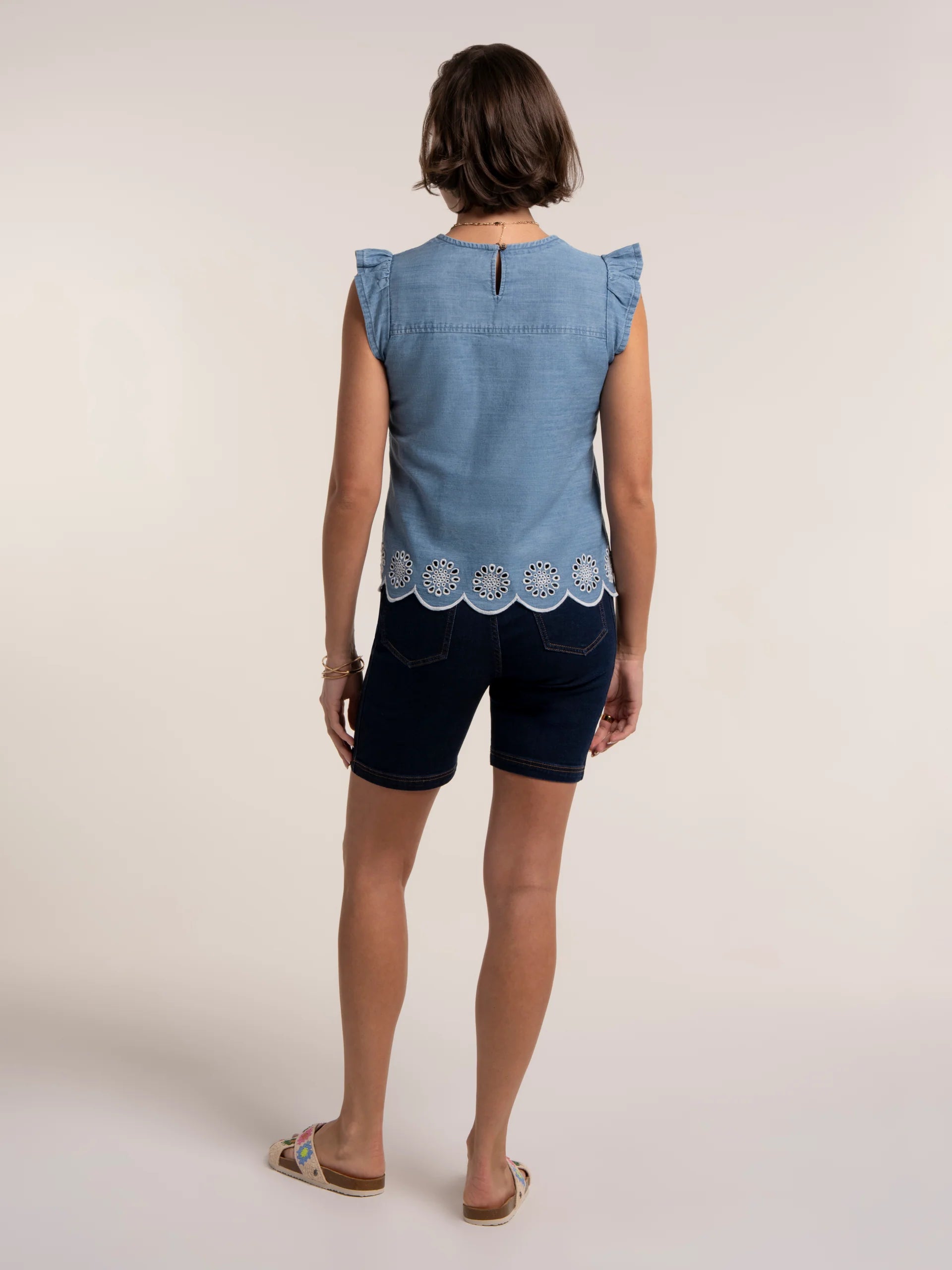 Bringing a laid-back holiday feel to everyday outfits, our Ipanema Blouse made from light weight slub denim with embroidery detail at hem, it pairs beautifully with summer seperates. The relaxed fit, easy shape is perfect for warm days.