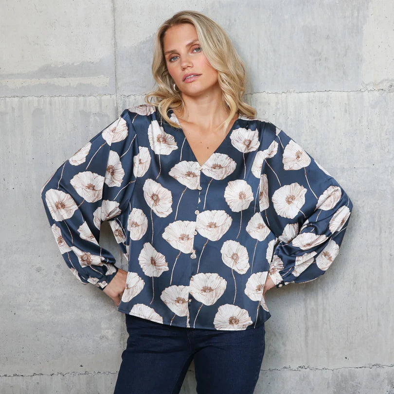 Elevate your everyday style with the Rant and Rave Dana Top in Teal, a beautifully feminine blouse designed to add a touch of elegance to any outfit. Crafted from a silky, lightweight fabric, this top drapes effortlessly for a flattering fit. The striking teal base is adorned with a bold floral print in soft neutral tones, making it perfect for pairing with jeans, tailored trousers, or skirts. Featuring a button-down front, gentle pleating at the shoulders, and long sleeves with buttoned cuffs, the Dana Top strikes the perfect balance between comfort and sophistication. Whether for the office, dinner dates, or weekend outings, this versatile piece will become a wardrobe favourite.