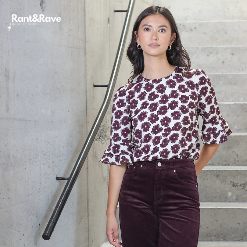 Elevate your everyday style with the Rant & Rave Maiya Top in Plum. Crafted in a soft, lightweight fabric, this blouse features a striking floral print in rich plum tones against a crisp ivory base. The round neckline and relaxed fit make it effortlessly comfortable, while the ¾ length sleeves with subtle flared cuffs add a feminine touch. Perfect for both work and weekend wear, it pairs beautifully with jeans, skirts, or tailored trousers for a chic, versatile look.
